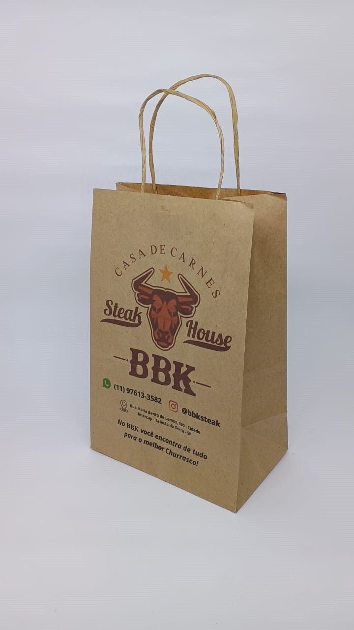 Sacola com alça kraft tamanho: 18x30x10, sem limite de cores para impressão.